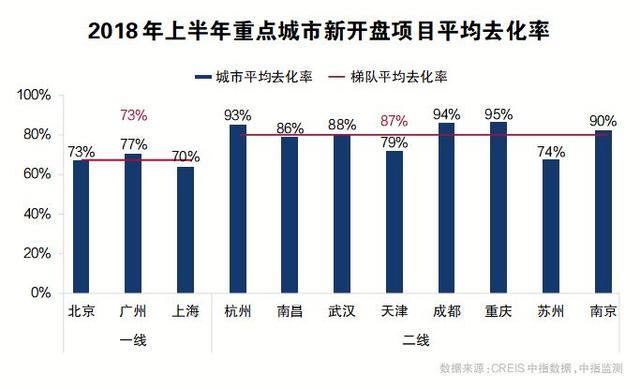 “去化率”是指銷售量與供應(yīng)量的比率,是衡量房地產(chǎn)銷售狀況的一個重要指數(shù)。2018年上半年,全國14個重點監(jiān)測城市新開住宅項目當(dāng)天去化率均值為89%。重慶、成都、杭州、南京4個城市去化率超過平均水平。近九成的去化率,證明目前房屋仍需求緊俏。